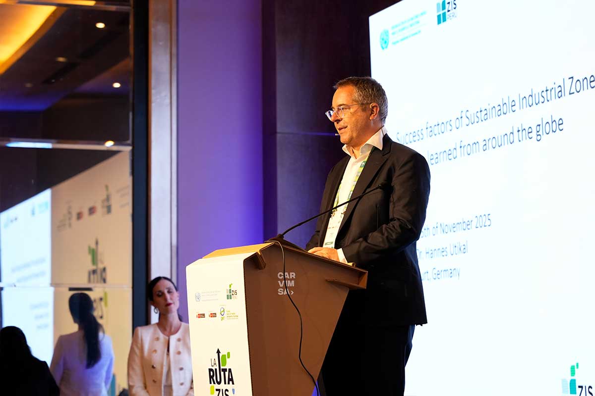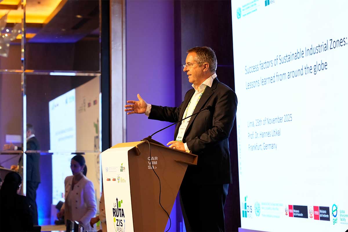 En su conferencia, el Prof. Dr. Hannes Utikal compartió lecciones aprendidas de zonas industriales sostenibles en Europa y Asia, mostrando que las más exitosas combinan políticas claras, buena gobernanza, servicios de alto valor y ecosistemas de innovación que conectan empresas, academia y sector público. A partir de casos como el parque industrial de Frankfurt Höchst, Brightlands Chemelot Campus o TEDA en China, planteó una idea central: las zonas industriales pueden ser plataformas para nuevos negocios verdes y descarbonización, y el Perú tiene la oportunidad de convertirse en referente regional si consolida estándares nacionales y gestiona profesionalmente sus parques.